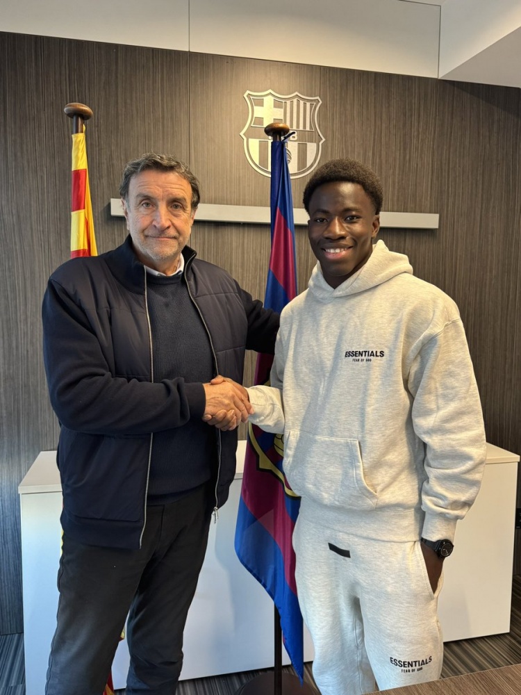 1月24日讯 巴萨官方宣布和15岁小将通卡拉(Ebrima Tunkara)就续约达成协议,该协议将于球员年满16岁生效,巴萨青训总监何塞·拉蒙·阿莱克桑科(José Ramon Alexanco)出席了续约仪式。